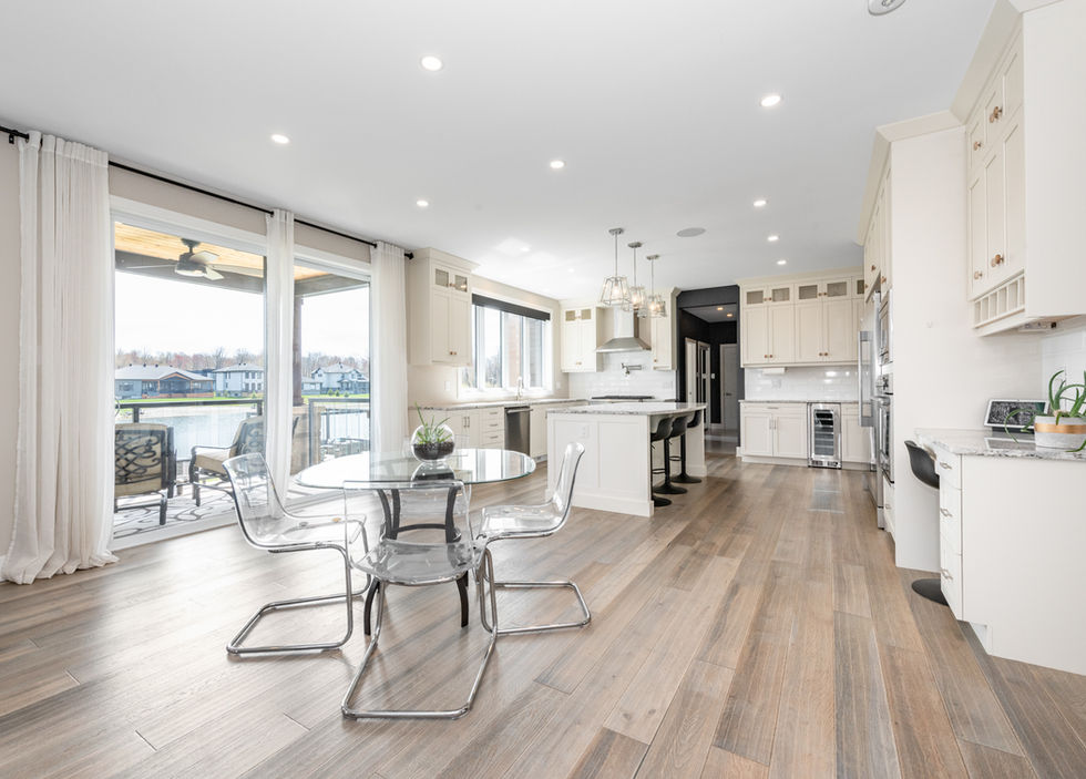 This premium 4bed 5 bath WATERFRONT, custom built with a WALKOUT is the one you have been waiting for! Main floor features a spacious foyer, oversized den/office and dining room complete with wall features. The sun filled kitchen-living area boasts breathtaking views of the water from every angle. Living room has a tiled gas fireplace and access to a covered rear patio. Chef's kitchen showcases an extended gas range with pot filler, commercial fridge/freezer, built-in wall oven/microwave all highlighted by custom cabinetry and completed with a large walk in pantry. Primary bedroom has recessed ceilings, a large walk-in closet and a modern ensuite. Second floor continues with 3 other oversized bedrooms and a full bath. Basement has wall to wall windows and walkout leading to a beautifully landscaped backyard with two interlock pads and a beach! Garage has a back bay, heater and basement access. Spec sheet and floor plans available upon request. $350/yr fee covers community pool/gym.